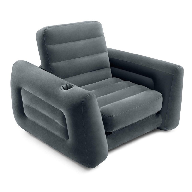 Ez a luxus kivitelű, antracitszürke kihúzható fotel bársonyos felülettel a kényelmet szolgálja. Beépített pohártartóval is rendelkezik az italok számára.