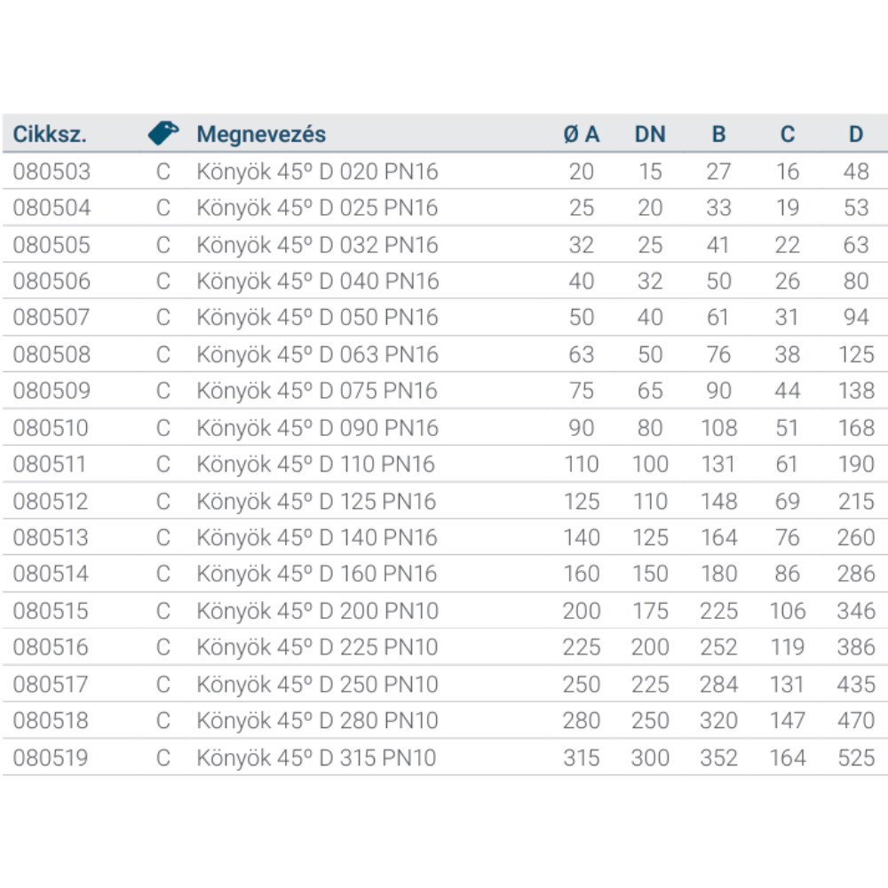 Könyök 45º D 280 PN10