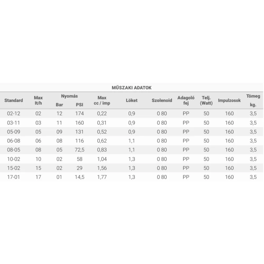 A membrános adagoló szivattyú teljesítménye 10 - 100% között kézzel szabályozható.
