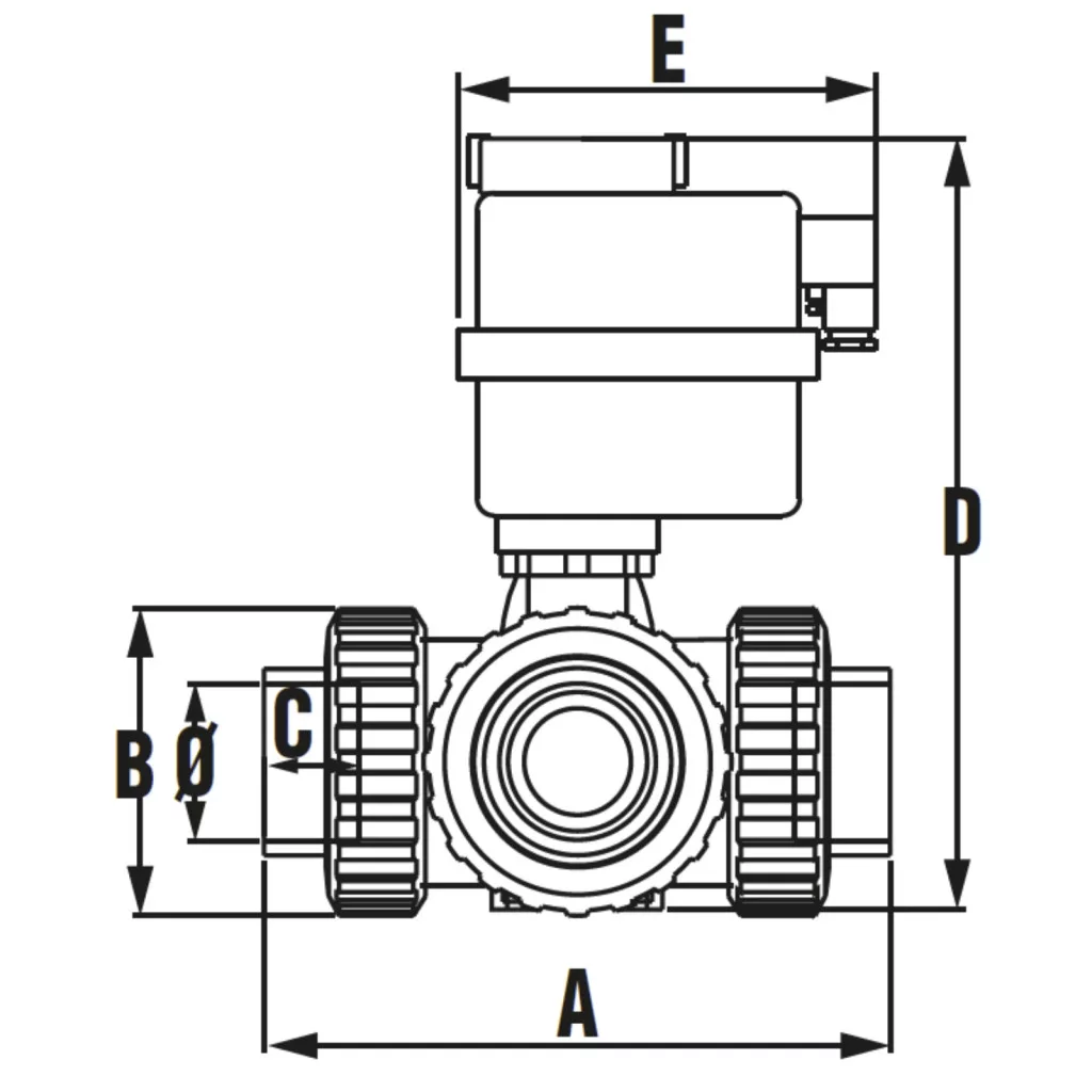 Kiváló minőségű PVC-U 3 utas motoros golyóscsap. A 3 utas golyóscsapok nagyobb rugalmasságot és sokoldalúságot biztosítanak az áramlási útvonalak kezelésében. A motoros golyóscsap egy elektromos motorral felszerelt változata a hagyományos golyóscsapnak. A motoros változatnál a gömb forgatása nem kézzel, hanem elektromos motor által történik. Automatizált működésének köszönhetően egyszerűbben és biztonságosabban használható a golyóscsap. Hosszú élettartam, kiemelkedő korrózióállóság és kopásállóság jellemzi. Felhasználhatósága egyszerű, összeszerelése praktikus és gyors.